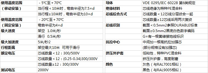 TRVV非屏蔽拖鏈電纜技術(shù)參數(shù)